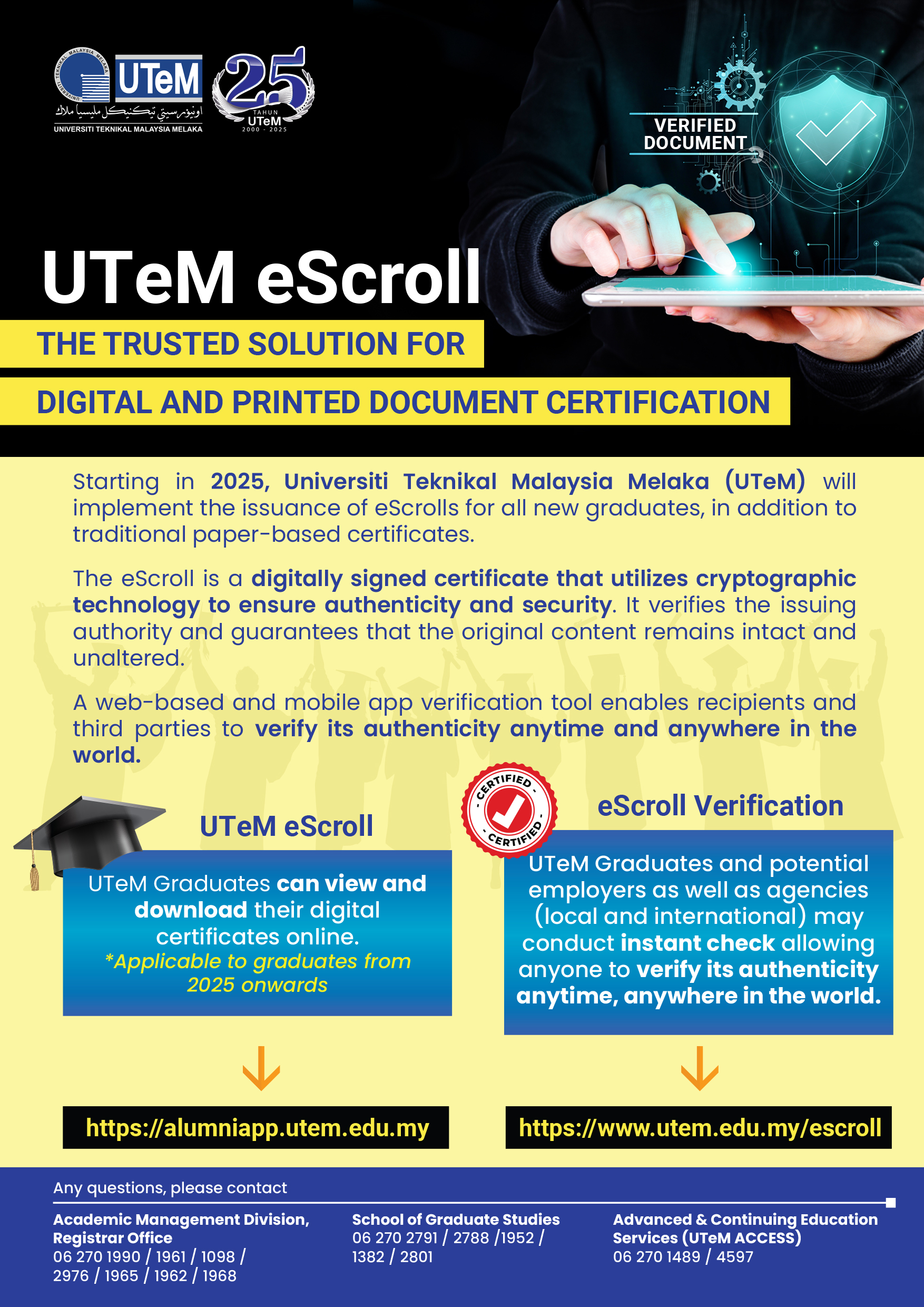 UTeM provides public continuing education and professional development. These could be part-time classes, seminars, or workshops covering a range of subjects.